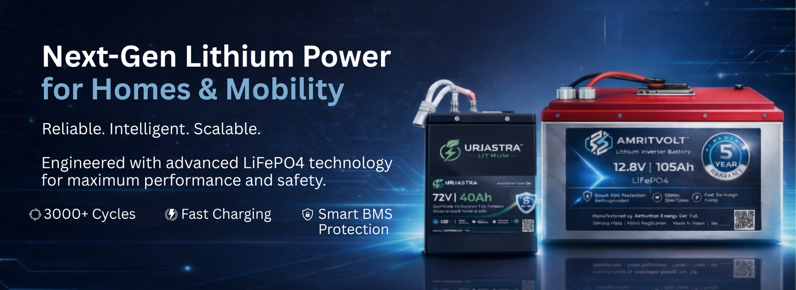 Through our flagship brands URJASTRA™ and AmritVolt™, we deliver intelligent battery solutions designed for performance, safety, and reliability.
